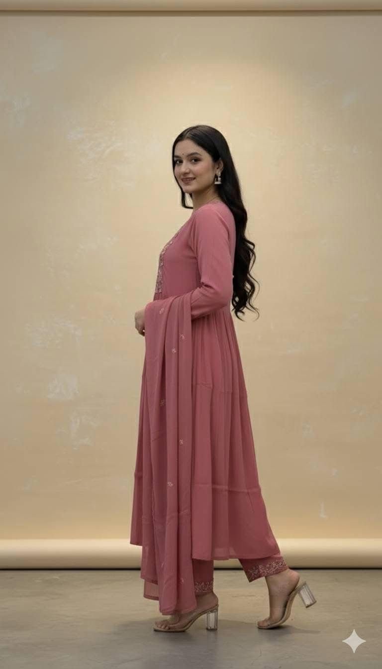 Luxury Printed Anarkali Gown Set with Matching Mask – 2 Piece Set