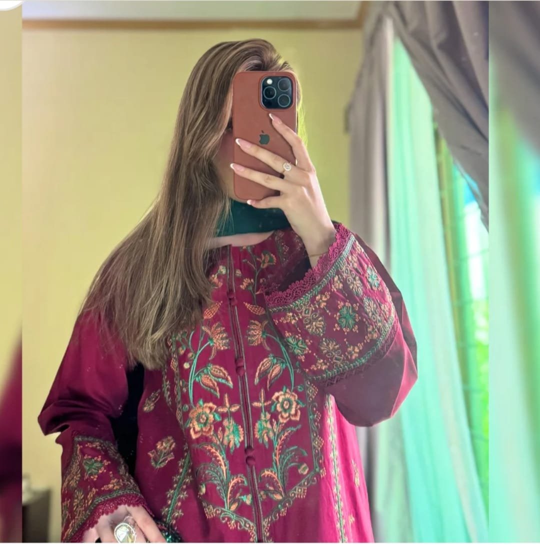 এই ৩-পিস ড্রেস সেটটি একটি রাজকীয় এবং মার্জিত লুক প্রদান করে। ডিপ ম্যাজেন্টা রঙের কামিজটি সম্পূর্ণরূপে নকশীকৃত সূক্ষ্ম এমব্রয়ডারি ওয়ার্কে সজ্জিত, যা পোশাকটিকে দেয় এক অনন্য ঐতিহ্যবাহী সৌন্দর্য। গলায়, হাতায় ও নিচের বর্ডারে ফুলের কারুকাজ পোশাকে ফুটিয়ে তোলে ক্লাসিক স্টাইল।