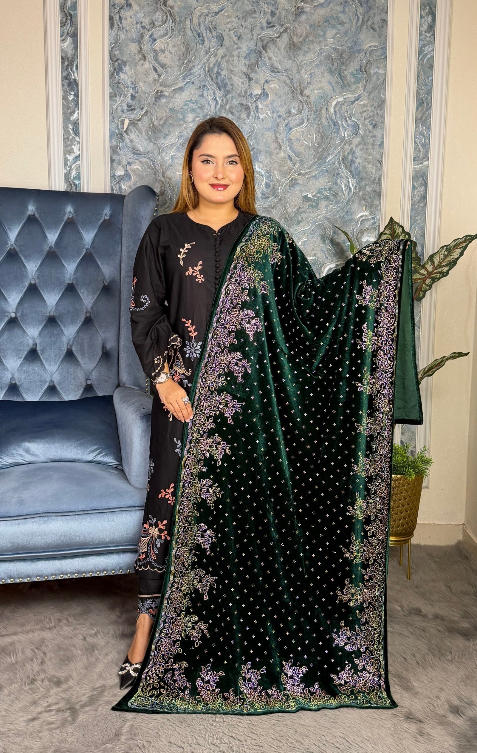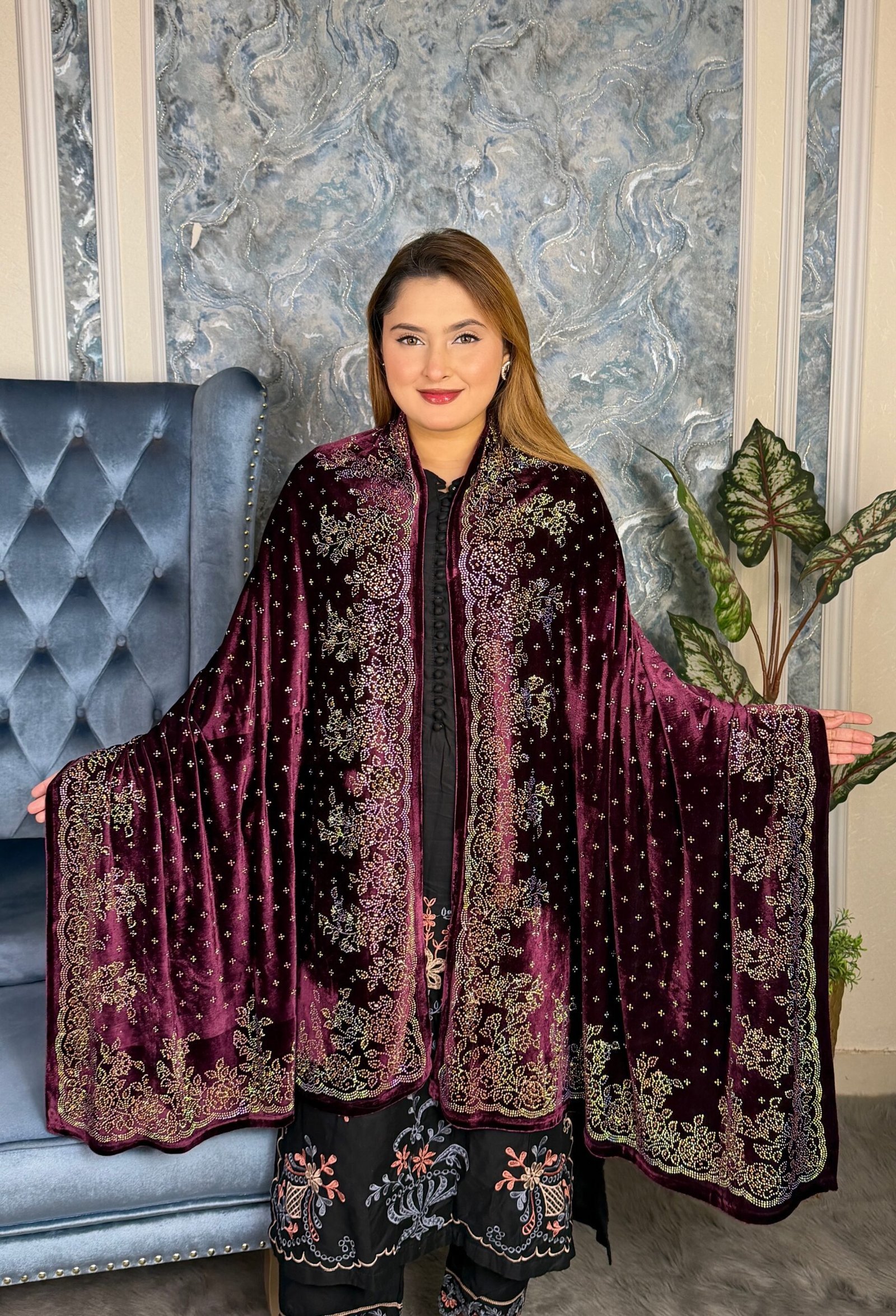 Royal Singapore Velvet Fabric Shawl Big Deg